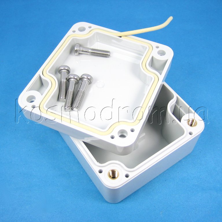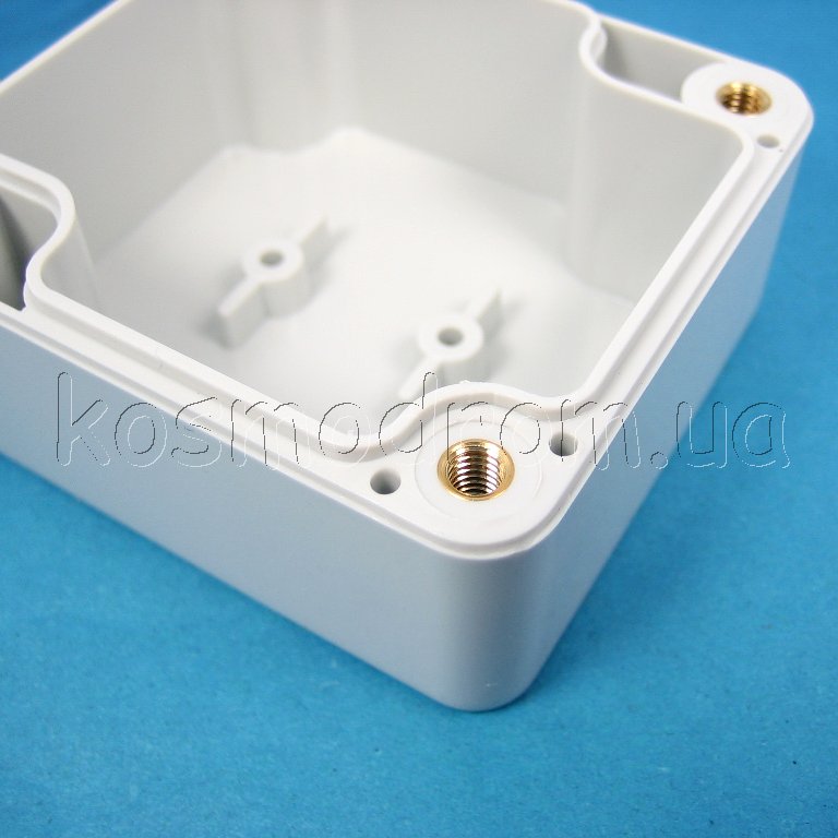 Фото может отличаться от реального вида предмета, но это не влияет на основные характеристики изделия | Корпус G201 Герметичный корпус светло серого цвета, из поликарбоната. IP65. Размеры: по длине 64мм, по ширине 58мм и по высоте 35мм. На внутренней поверхности корпуса отлиты стойки для горизонтального размещения печатных плат.
