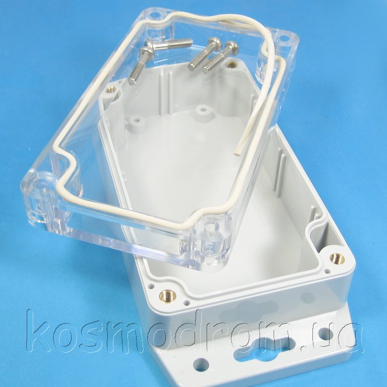 герметичный корпус с прозрачной крышкой и фланцем серого цвета с фланцами для