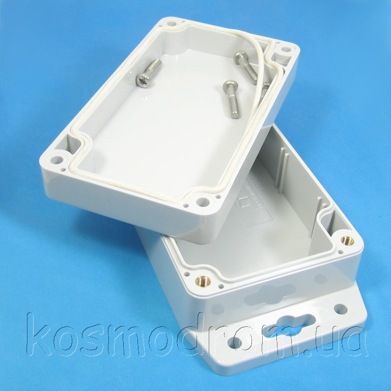 Фото может отличаться от реального вида предмета, но это не влияет на основные характеристики изделия | Корпус G203MF Герметичный корпус, светло серого цвета с фланцами для настенного монтажа или монтажа по месту установки, производство осуществляется из поликарбоната.