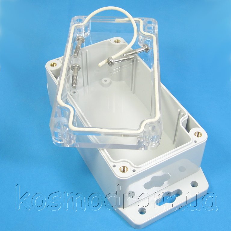 корпус с прозрачной крышкой и фланцем серого цвета с фланцами для настенного