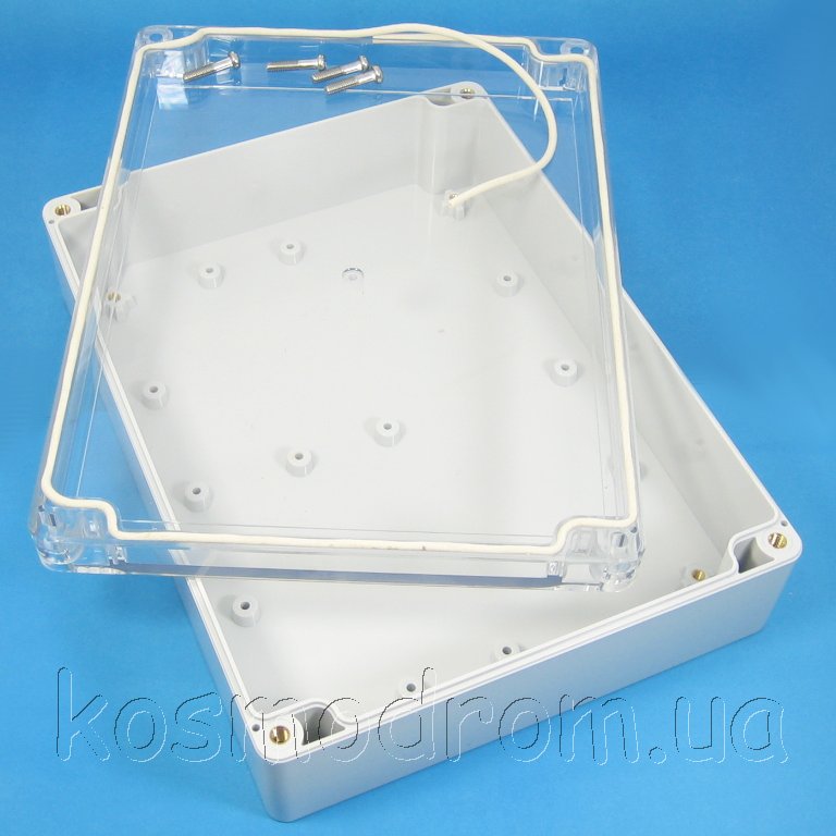 Фото может отличаться от реального вида предмета, но это не влияет на основные характеристики изделия | Корпус G2119C Герметичный корпус светло серого цвета, из поликарбоната. IP65. с прозрачной крышкой. Размеры: по длине 200мм, по ширине 150мм и по высоте 55мм.