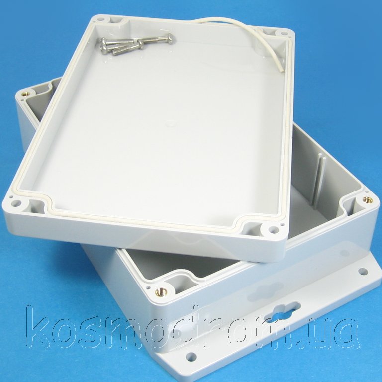 Фото может отличаться от реального вида предмета, но это не влияет на основные характеристики изделия | Корпус G214MF Герметичный корпус светло серого цвета с фланцами для настенного монтажа или монтажа по месту установки, производство осуществляется из поликарбоната.