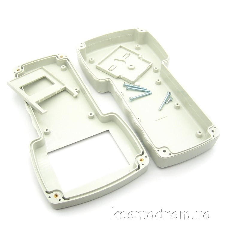 Фото может отличаться от реального вида предмета, но это не влияет на основные характеристики изделия | Корпус G828G(O) пластиковый корпус светло-серого цвета, ABS пластик. Размеры: по длине 110мм, по ширине 210мм и по высоте 40.5мм. Вырез под дисплей. На внутренней поверхности стойки для горизонтального размещения печатных плат.