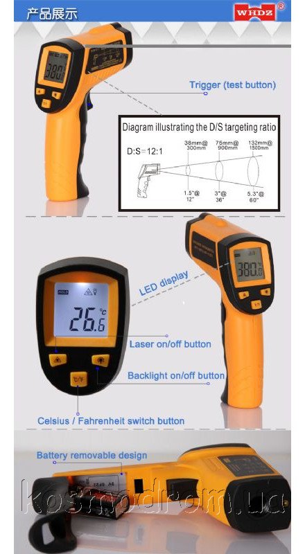 пирометра упрощено благодаря лазерному указателю.