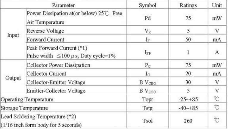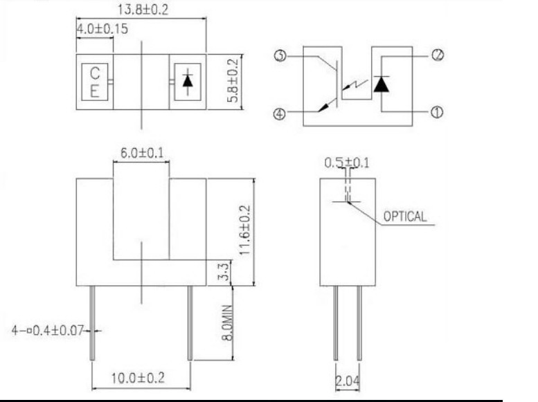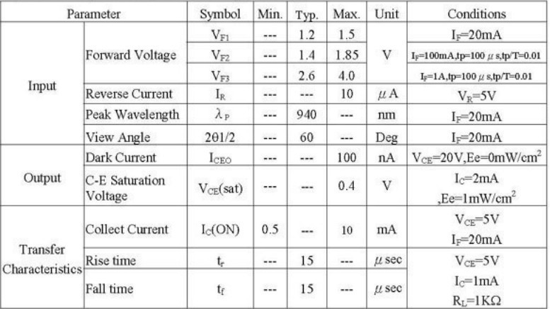 4pin, Uin=1.5V, 20mA, Out-30V/20mA/75mW, оптическая щель 6мм