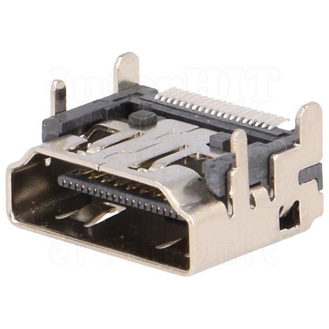 Разъем: HDMI: гнездо: угловой: PIN:19: SMD: Покрытие: gold flash DS1114-BN0XR