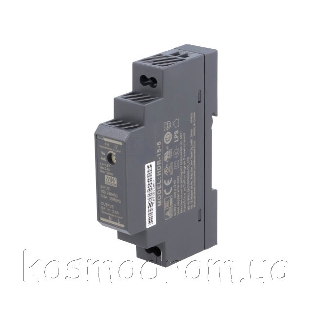 |  Нажми на картинку, чтобы увеличить ее Фото может отличаться от реального вида предмета, но это не влияет на основные характеристики изделия | Модульный источник питания на DIN-рейку HDR-15-24 AC/DC преобразователь: на DIN рейку 15 Вт выходное напряжение 24В,вых.ток 630мА вход: 85…264VAC / 120…370VDC -30...70°C. Размеры: 17,5х90х54,5 мм,количестов выходов 1