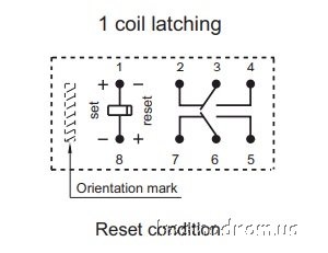 Реле: электромагнитное, 2С, Uобмотки: 5VDC, Бистабильное,, Комм.0,3A/125VAC, 1А/30VDC, Макс. 2А, Размер: 10x6,5x5,4мм, Монтаж: DIP