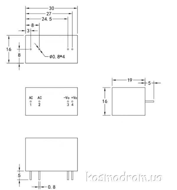 Размеры: 30х16х19 мм