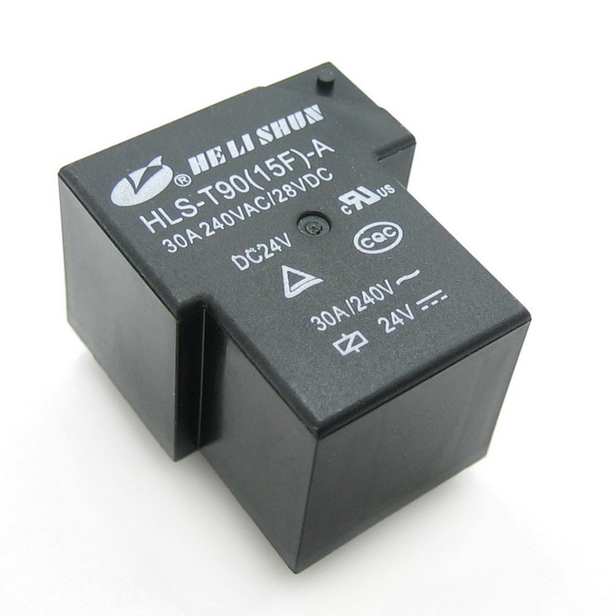 Фото может отличаться от реального вида предмета, но это не влияет на основные характеристики изделия | Реле электромеханическое HLS-T90-15F-A-DC24V-R Реле, моностабильное, конф. контактов: 1A (SPST-NO), Uобмотки: 24В, макс. комм. ток: 30А, комм. напряжение DC: 30В, комм. напряжение AC: 240В, габаритные размеры: 27.5x20.4x32.5мм.