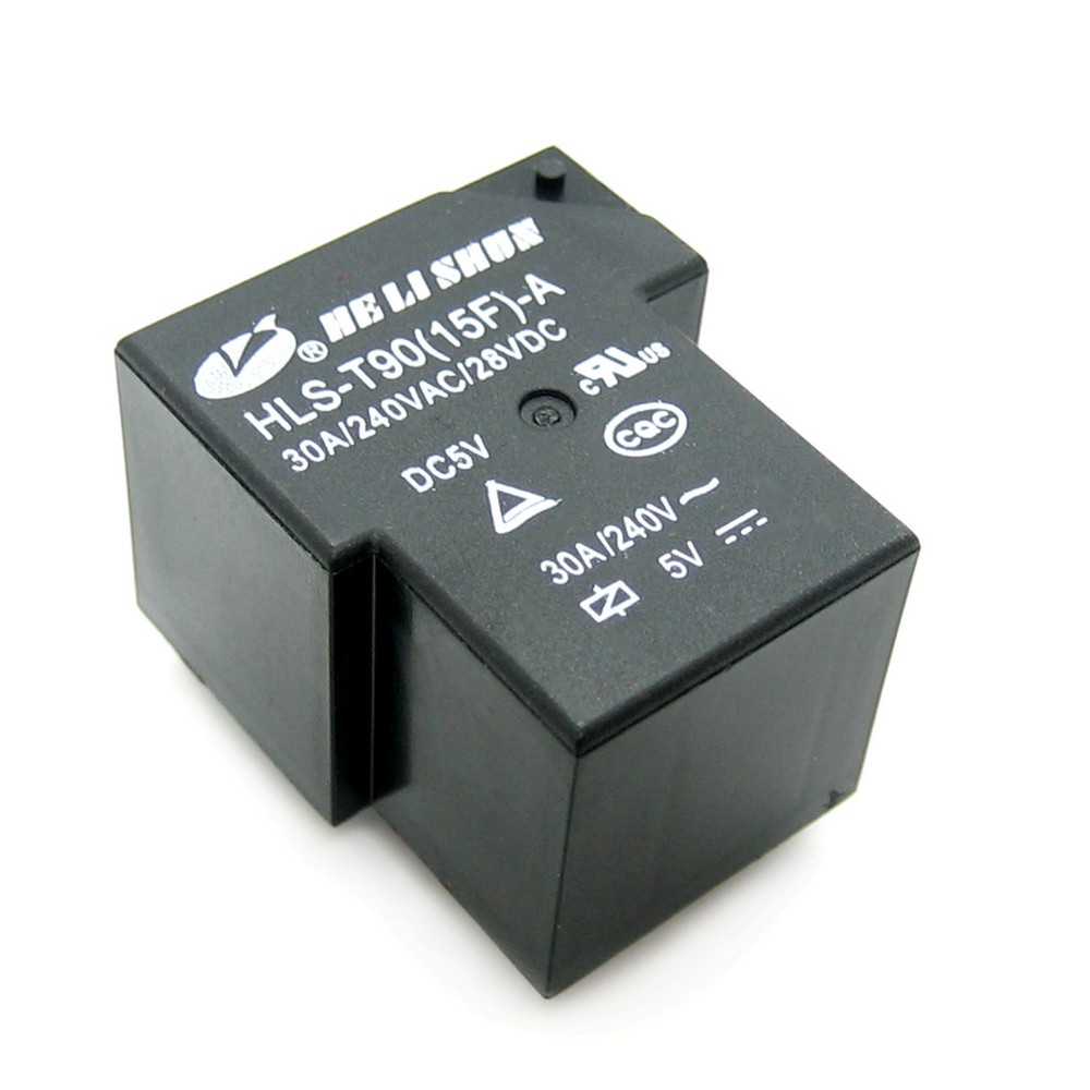 Фото может отличаться от реального вида предмета, но это не влияет на основные характеристики изделия | Реле электромеханическое HLS-T90-15F-A-DC5V Реле, моностабильное, конф. контактов: 1A (SPST-NO), Uобмотки: 5В, макс. комм. ток: 30А, комм. напряжение DC: 30В, комм. напряжение AC: 240В, габаритные размеры: 27.5x20.4x32.5мм.