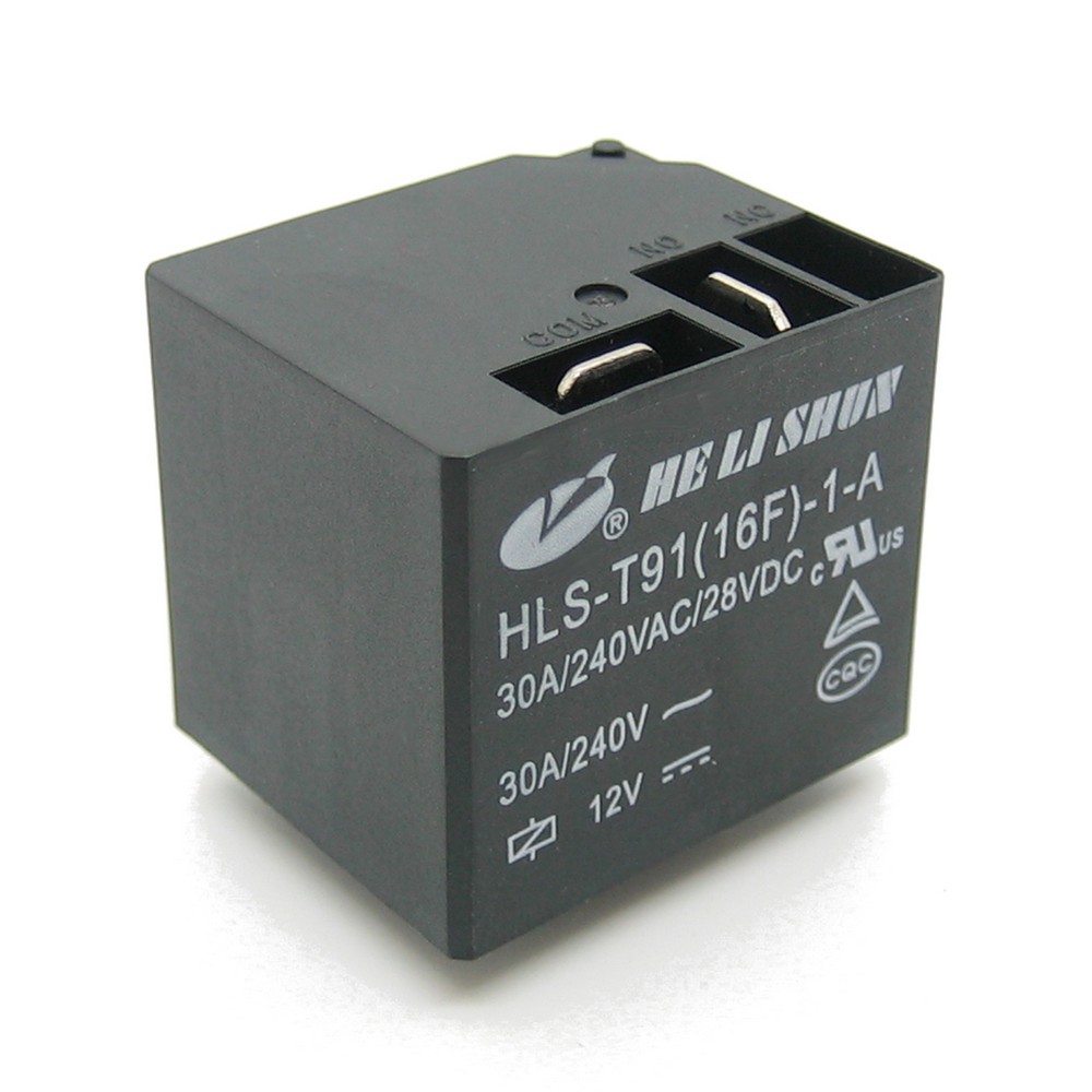Фото может отличаться от реального вида предмета, но это не влияет на основные характеристики изделия | Реле электромеханическое HLS-T91-16F-1-DC12V-A Реле, моностабильное, конф. контактов: 1A (SPST-NO), Uобмотки: 12В, макс. комм. ток: 30А, комм. напряжение DC: 30В, комм. напряжение AC: 250В, габаритные размеры: 32.5x27.5x28мм.