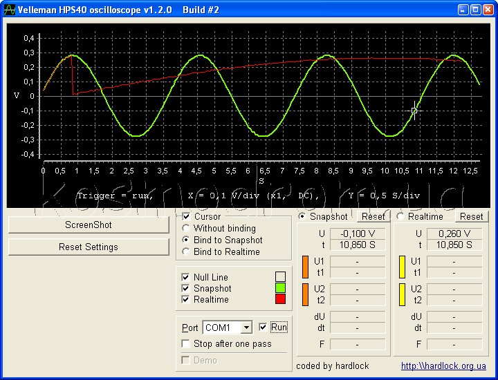 • Курсоры: напряжения и времени