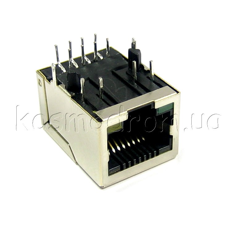Фото может отличаться от реального вида предмета, но это не влияет на основные характеристики изделия | Разъем RJ-45 J00-0045NL RJ45:Скорость: 10/100 Base-TX : Высота на платой: 13.84 мм (0.545) Неэкранированный : 2 Wire CMC, AutoMDIX, Board Guide, Board Lock