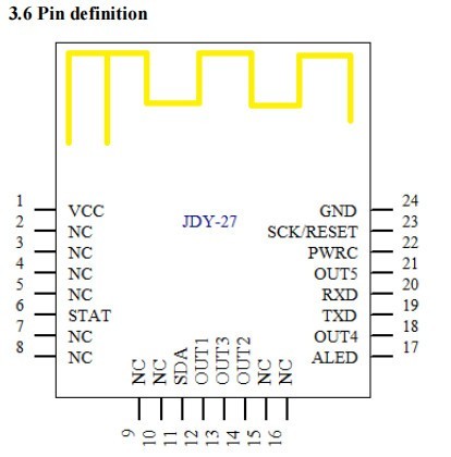 Фото может отличаться от реального вида предмета, но это не влияет на основные характеристики изделия | Модуль Bluetooth JDY-27 2,4G 1,7-3,6 В UART
