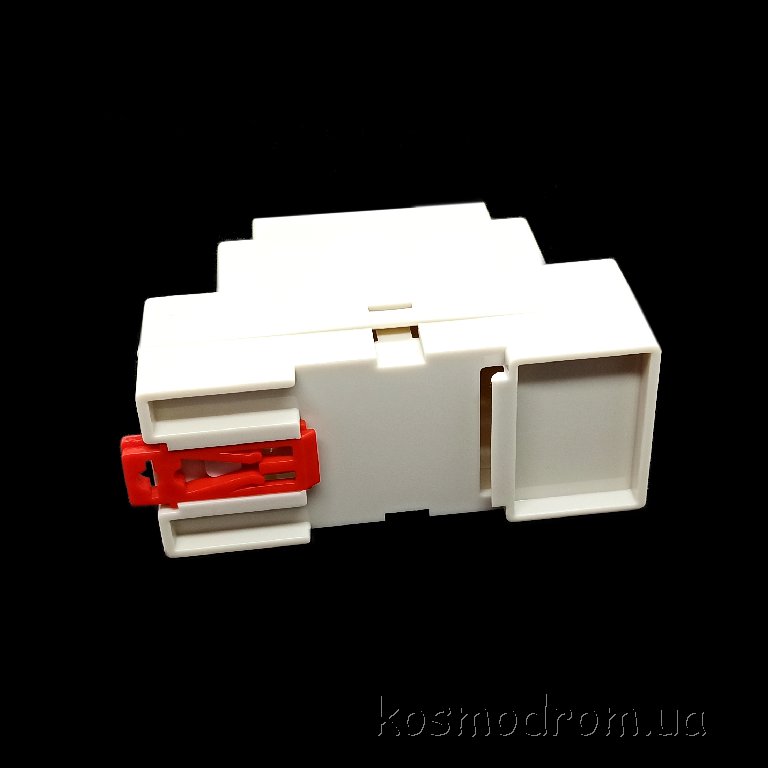 Пластиковый корпус на DIN рейку светло серого цвета, из ABS пластика. Габаритные размеры составляют: по длине 37мм, по ширине 88мм и по высоте 59мм.