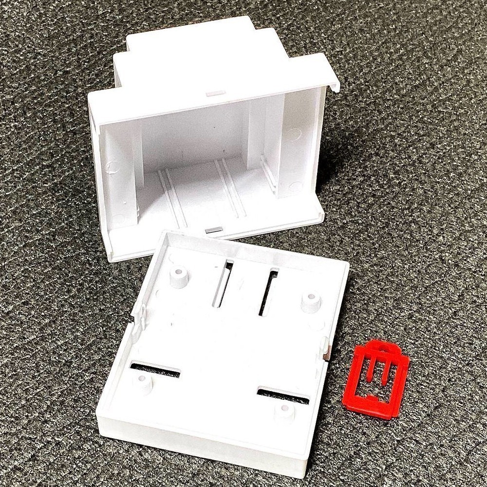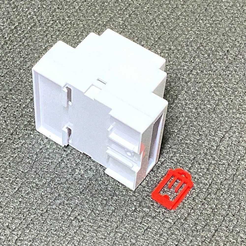 Корпус на DIN рейку белого цвета, из ABS пластика. Габаритные размеры составляют: по длине 88 мм, по ширине 72 мм и по высоте 59 мм. KLS24-DR03