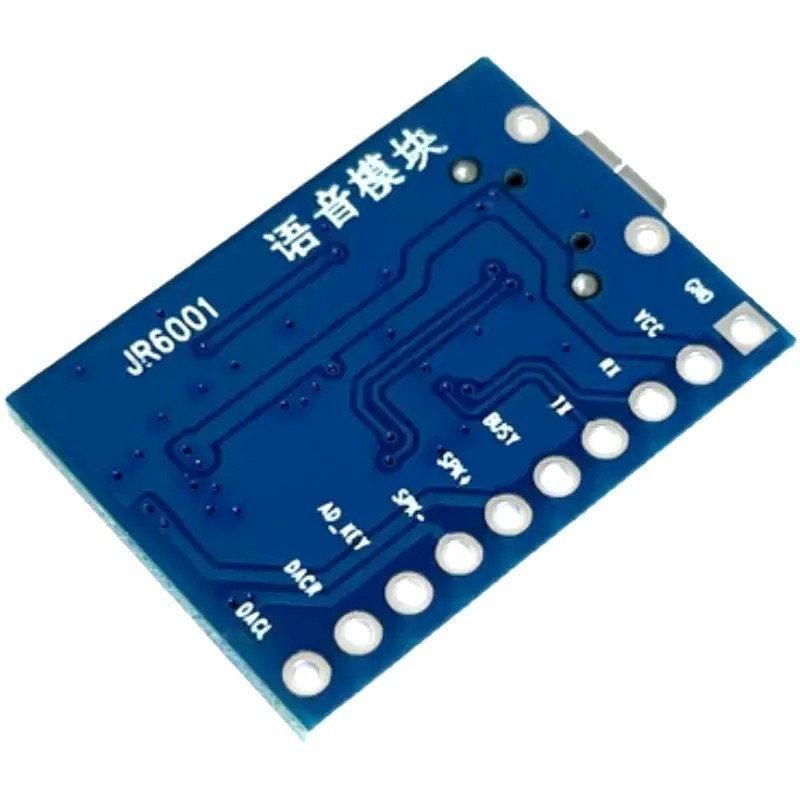 Модуль автономного аудиоплеера со встроенной памятью 4МБ и усилителем, мощностью 3Вт. Сортировка файлов во Flash памяти осуществляется по имени файла, которое должно состоять из шести цифр, например: 00001.mp3. Управление модулем осуществляется с помощью резистивной клавиатуры, подключенной к пину AD-KEY, или с помощью микроконтроллера через интерфейс UART. Модуль позволяет подключить внешний динамик или может быть подключен к внешнему усилителю. Распиновка модуля указана на обратной стороне платы.