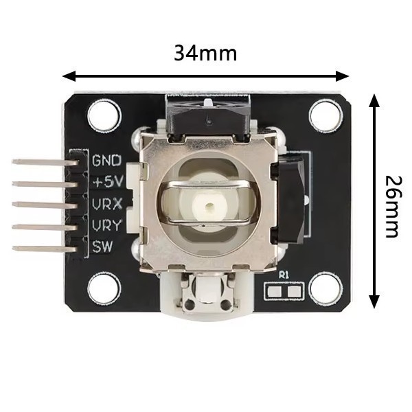 Джойстик, манипулятор, модуль управления может использоваться для управления различными устройствами, роботами, моделями. Управления осуществляется по двум осям X, Y, на плате джойстика установлены два потенциометра. Основываясь на их показаниях, джойстик отслеживает отклонения влево, вправо, вверх, вниз и выдает аналоговый сигнал от 0 до 1023. Ось Z посажена на кнопку и выдает цифровой сигнал (вкл/выкл).