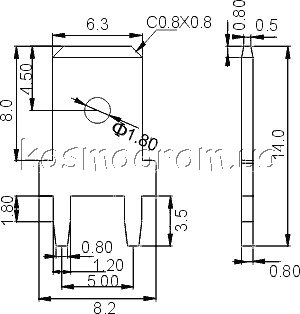 Наконечник: плоский, 6,3мм, 0,8мм, папа, латунь, луженые. K12-00Z(H)