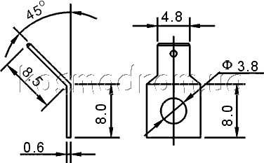 Наконечник: плоский, 4,8мм, 0,8мм, (папа), M3,5, винтами, латунь