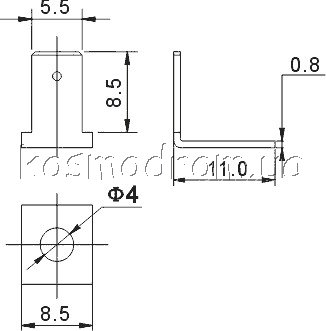 Наконечник: плоский, 5,5мм, 0,8мм, папа, M4, винтами, латунь