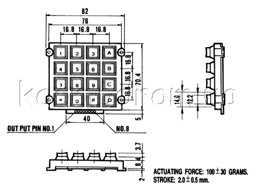 Фото может отличаться от реального вида предмета, но это не влияет на основные характеристики изделия | Клавиатура KB1607-MNS-WP 4х4, цифровая, металлическая, водозащищённая