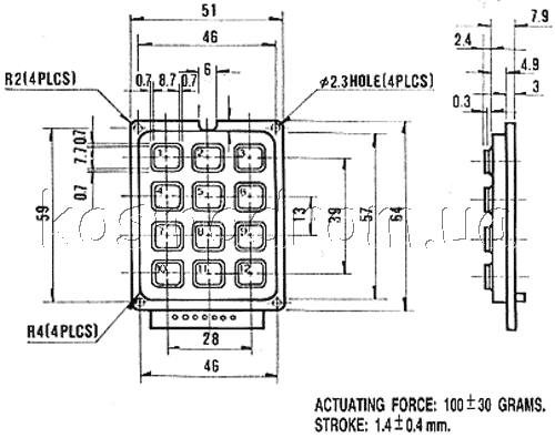 Клавиатура: универсальная: Количество кнопок:12: 200мОм: 1Н: 20мА AK-304-N-BBW