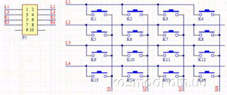 Матричная клавиатура для Ардуино, 16 тактовых кнопок 4х4.
