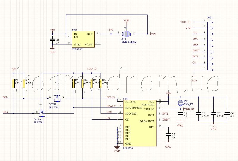 представляет собой печатную плату для 3-х осевого гироскопа L3GD20 фирмы