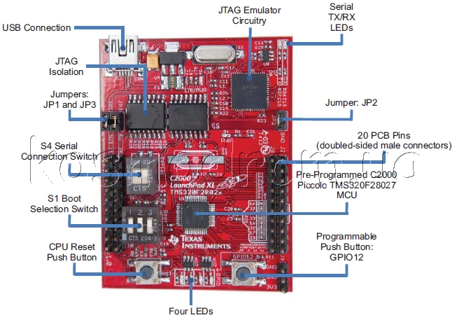 Основой оценочной платы является микроконтроллер Piccolo™ TMS320F28027,