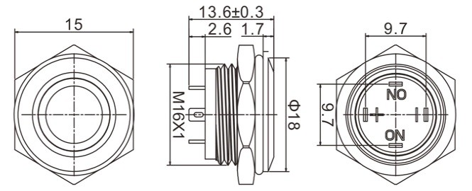 Диаметр монтажного отверстия: 16 мм