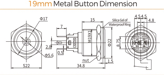 Диаметр монтажного отверстия: 19 мм