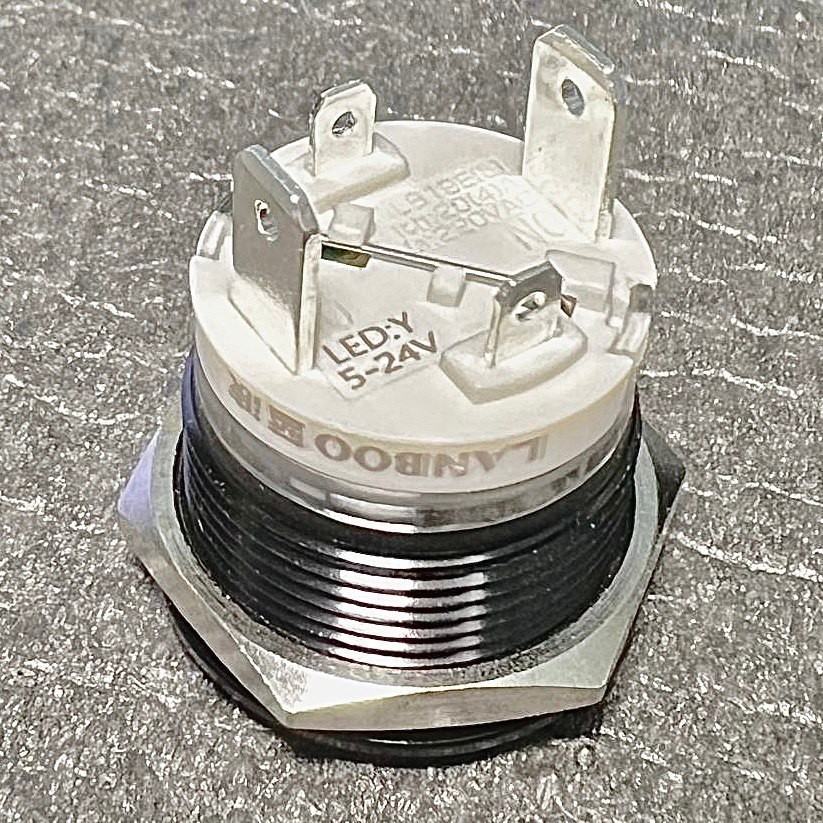 Фото может отличаться от реального вида предмета, но это не влияет на основные характеристики изделия | Кнопка антивандальная LB19E-P10Z/E+XDY5-24V/A(L)longpin D=19mm, 1NO, Aluminum oxide BLACK, плоская, нормально открытая, С ФИКСАЦИЕЙ, круговая LED+DOT, YELLOW (желтый), 5-24V, High-Current, MAX: 16A/250VAC Временно нет на складе...