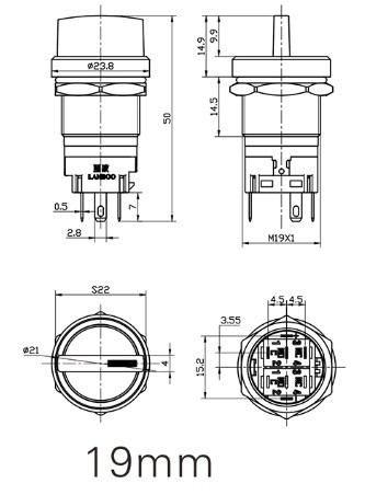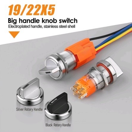 Фото может отличаться от реального вида предмета, но это не влияет на основные характеристики изделия | Поворотный переключатель LB19X5-X11Z Переключатель, диаметр 19 мм, без LED, 1NO1NC, цвет стальной