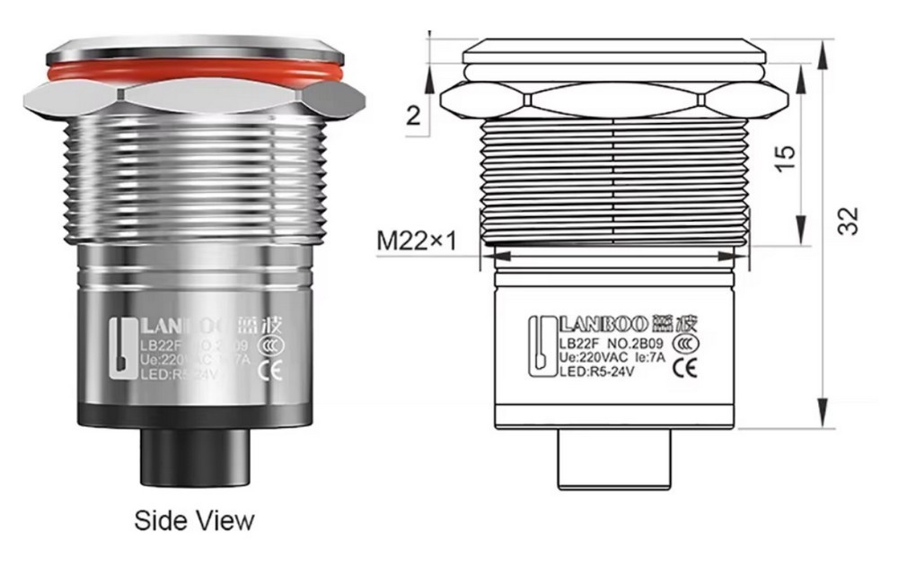 | .jpg) Нажми на картинку, чтобы увеличить ее Фото может отличаться от реального вида предмета, но это не влияет на основные характеристики изделия | Кнопка антивандальная LB22F-P10Z/S135/M12-4P(L) D=22mm, 1NO, плоская, нормально открытая, С ФИКСАЦИЕЙ, без подсветки, IP68