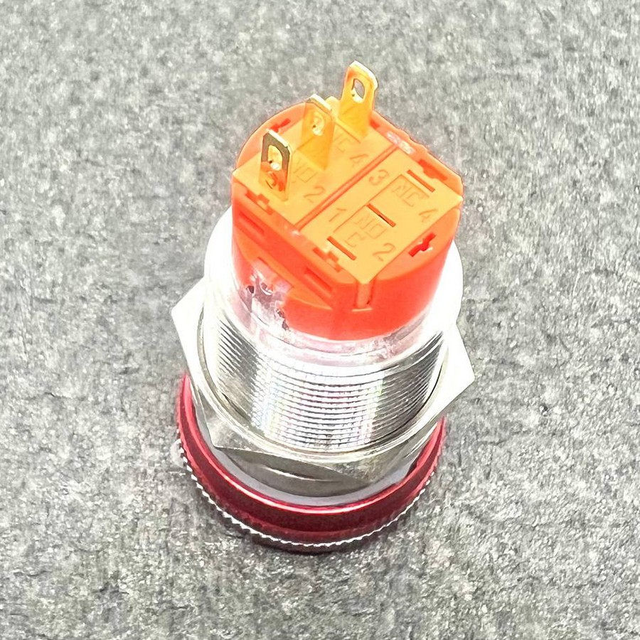 кнопка (грибок),с подсветкой красного цвета, диаметром 22 мм, в металлическом