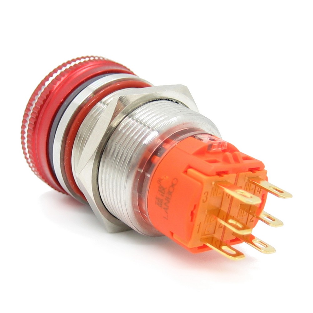 кнопка (грибок),с подсветкой красного цвета, диаметром 22 мм, в металлическом