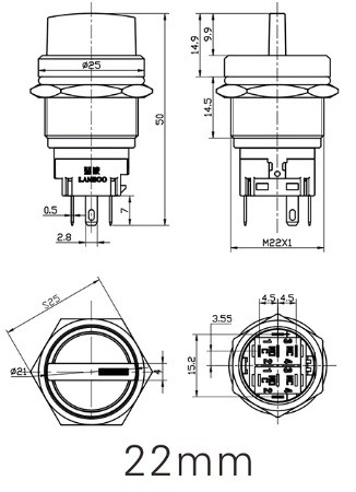 Фото может отличаться от реального вида предмета, но это не влияет на основные характеристики изделия | Поворотный переключатель LB22X5-X11Z Переключатель, диаметр 22 мм, без LED, 1NO1NC, цвет стальной
