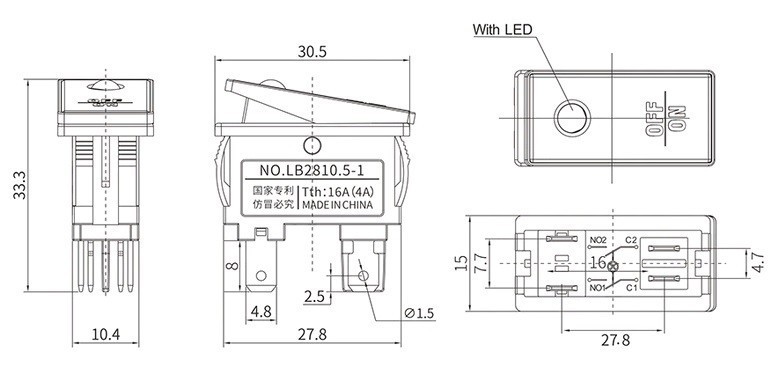 Клавишный переключатель серии 2810,5.