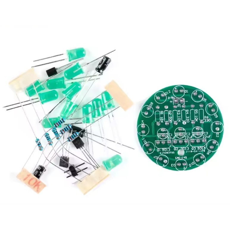 Электронный набор для самостоятельной сборки светодиодного светильника. Плата + набор деталей. Зеленые светодиоды