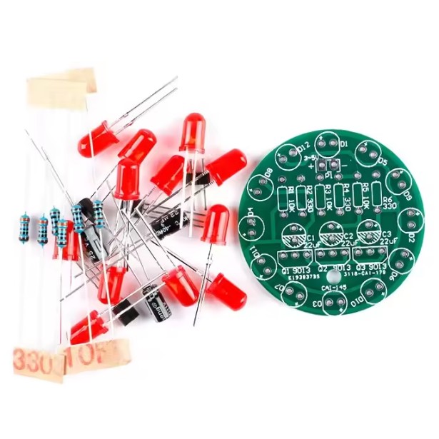 Электронный набор для самостоятельной сборки светодиодного светильника. Плата + набор деталей. Красные светодиоды