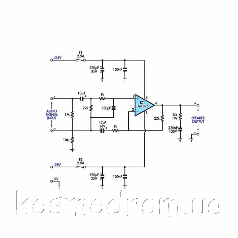 Основой является микросхема LM1875T, также в комплектацию входит всё