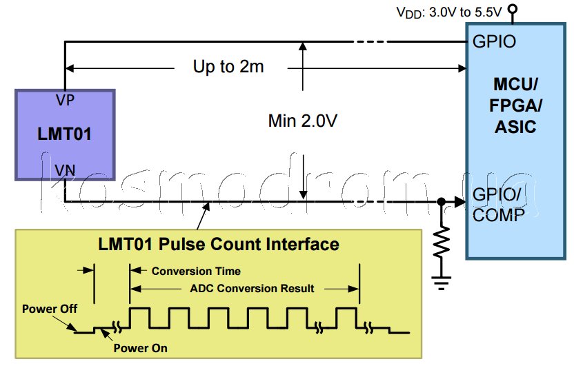 микроконтроллера – достаточно подать питание на LMT01 и затем