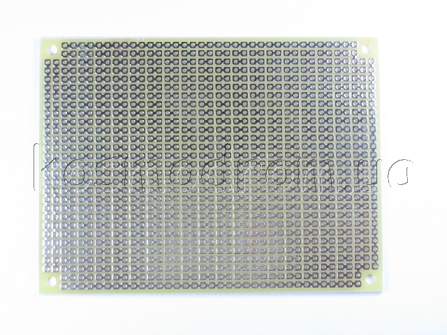 Макетная плата односторонняя, без металлизации отверстий, размер 77 на 102 мм, с отверстиями для крепления.