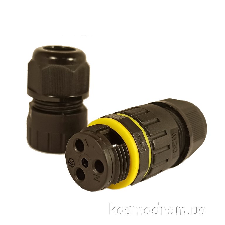Герметичный кабельный соединитель. Резьба М20. Количество контактов: 3 Диаметр кабеля: 5-9 мм. IP68