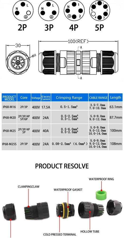 Сечение жил присоединяемого кабеля: 0.5mm2-2.5mm2