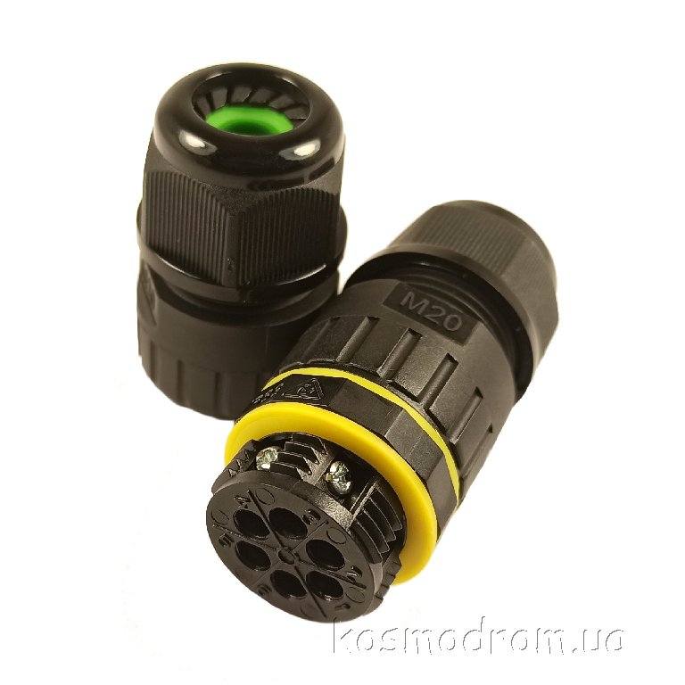 Герметичный кабельный соединитель. Резьба М20. Количество контактов: 5 Диаметр кабеля: 9-12 мм. IP68