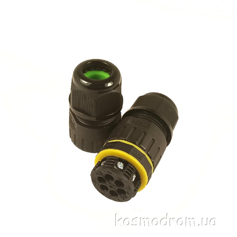 Герметичный кабельный соединитель. Резьба М20. Количество контактов: 6 Диаметр кабеля: 9-12 мм. IP68