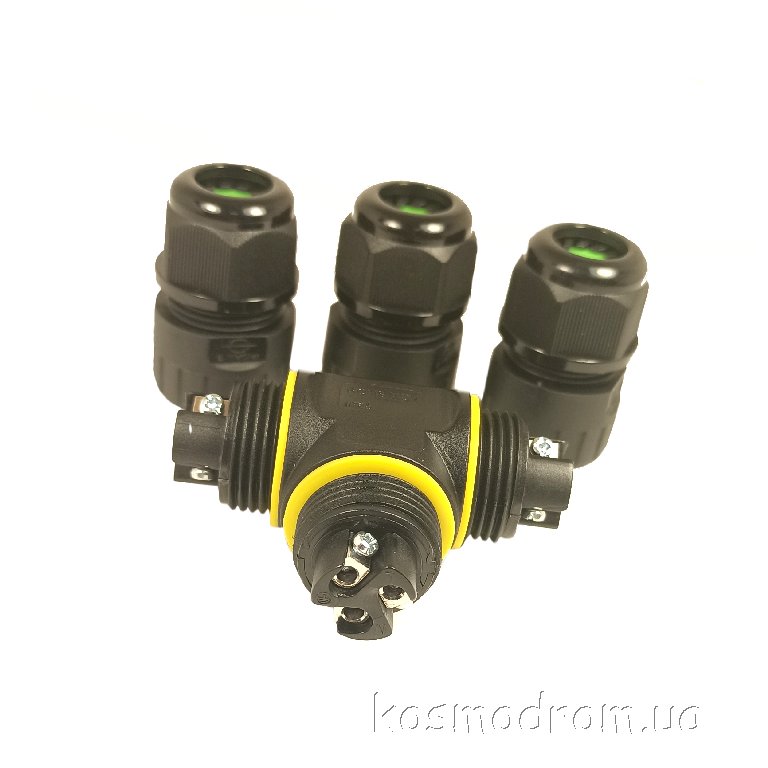 Герметичный кабельный соединитель (разветвитель). Резьба М20. Количество контактов: 3 Диаметр кабеля: 5-8,5 мм. IP68